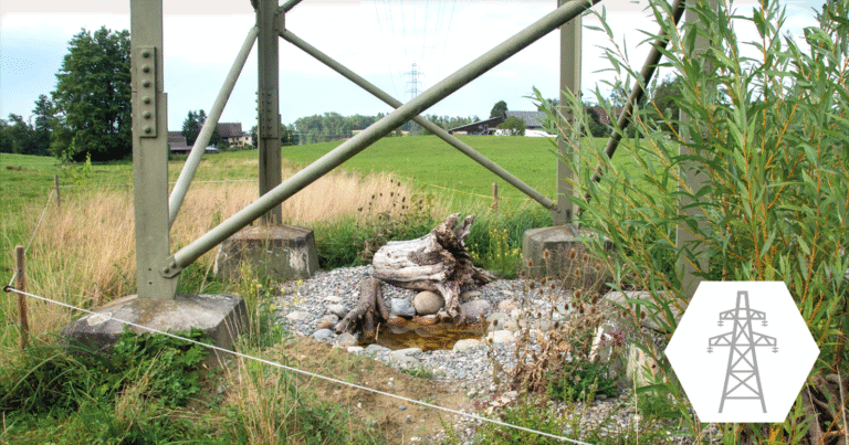 Für die Förderung der Biodiversität eignen sich Strommasten besonders gut. Die Bewirtschaftung ist nur von Hand möglich und sehr aufwändig. Als Standort für Kleinstrukturen sind sie prädestiniert. Ökologisch ist diese Massnahme interessant: Durch die regelmässige Anordnung tragen Strommasten zur Vernetzung bei. Mit drei ausgewählten Kleinstrukturen kann viel erreicht werden. Seien es Holzbeigen, Steinhaufen, Sandlinsen oder dornenlose Gehölzgruppen – sämtliche Tiere wie Wildbienen, Reptilien oder Kleinsäuger profitieren hiervon. Teilen Sie uns den Strommast Ihrer Wahl mit und wir kümmern uns um die Bewilligung.